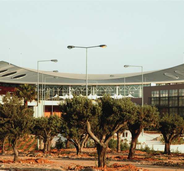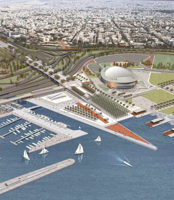 The building’s key position within the whole Faliron Bay Regeneration Project — its proximity to the city and the sea, the Esplanade (the elevated pedestrian walkway connecting functionally and symbolically the city to the sea) as well as the innovative and state-of-the-art design, have established it as a landmark for the city of Athens. The massing of the sport’s hall is in complete harmony with the general design and geometry of the Master Plan, aiming to reduce the structure’s height and promote its lightness.