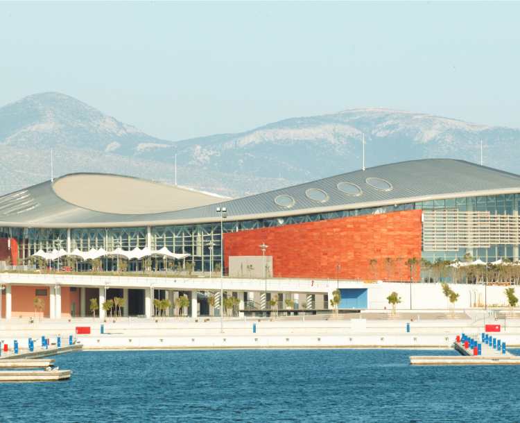 Regarded as one of the most recognizable sites of the 2004 Olympic Venues, the stadium was designed to host the Handball and Tae Kwon Do events, with a capacity of 8,000 seats.